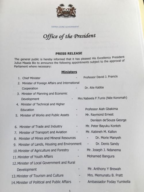 IN THE PICTURE THAT PRESIDENT MAADA BIO HAS PAINTED BY HIS APPOINTMENTS SO FAR, WOMEN IN SIERRA LEONE ARE NOT FARING WELL!