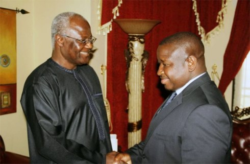 Mr. Bio (right) and his predecessor Mr. Koroma