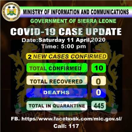 On March 31, 2020, Sierra Leone announced its first positive COVID 19 case. At the time of publishing this post, April 12, 2020, the country has registered ten (10) positive cases. The image below provides an updated information from the Sierra Leone Ministry of Information and Communication.