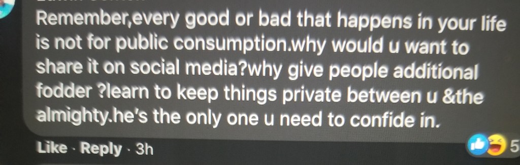 A recent example is that of a popular social media strip dancer (she strips almost naked in most of her twerking dance videos). She took to social media and online newspapers to cry foul about her so called “longtime boyfriend” dumping her to marry another woman. To pitch her pity party to her social media followers, she posted very personal cozy photos of herself with the so-called boyfriend during what clearly seemed like their private moments together. Her followers’ sympathy-clicks and sharing were obviously great motivating factors for her ugly act.
