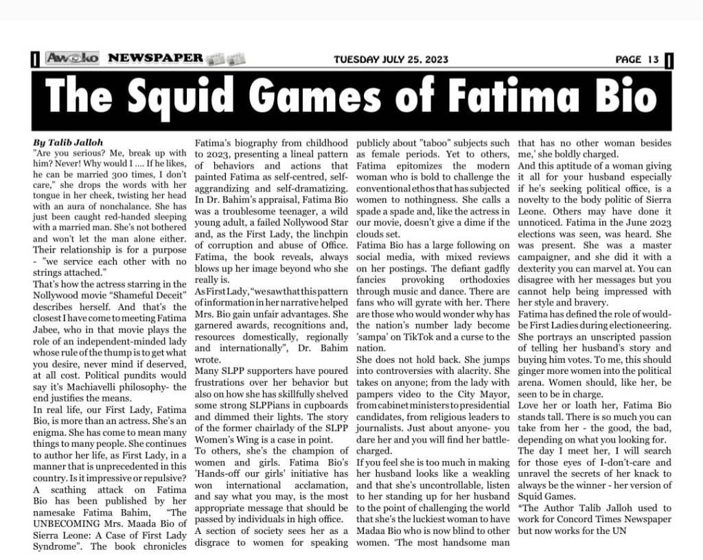 Awoko Newspaper Online: The Squid Games of Fatima Bio