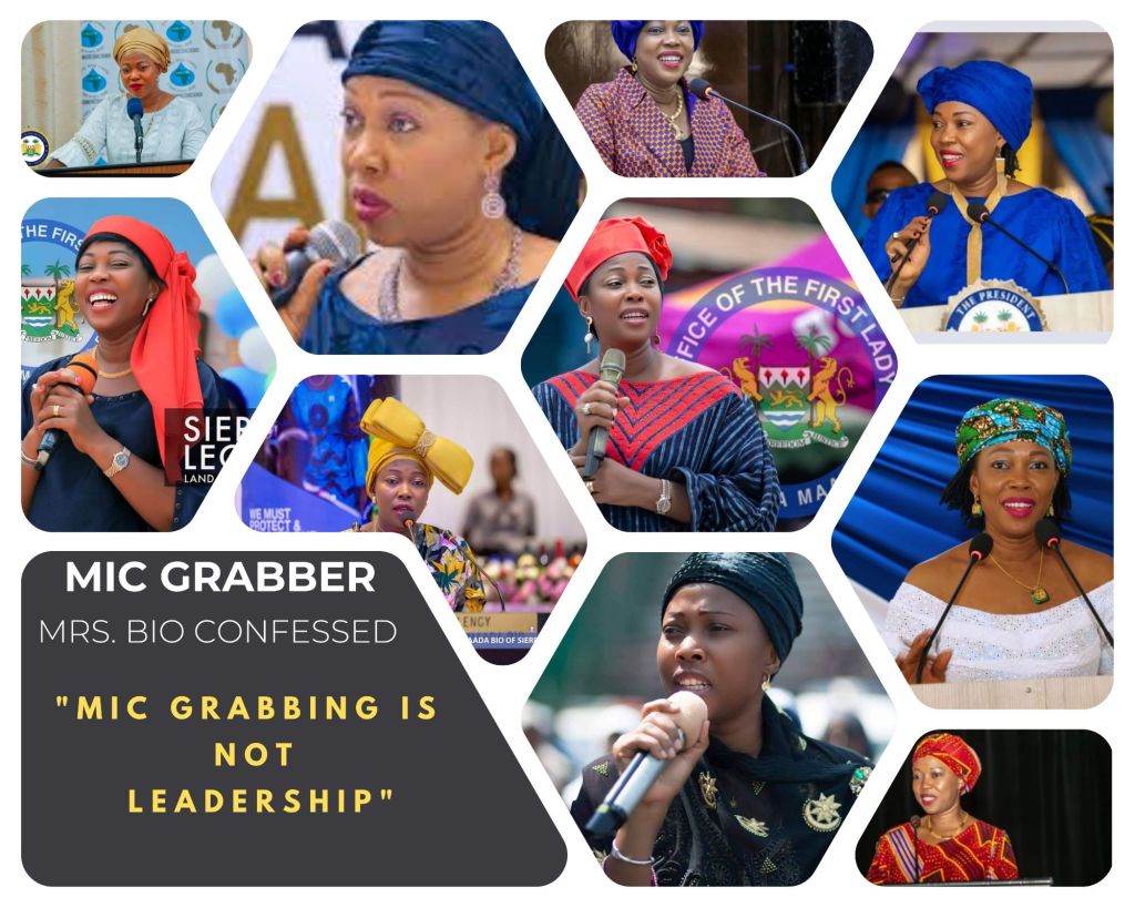 As the wife of the most powerful man in the SLPP and the country, Mrs. Bio is gravely afflicted with First Lady Syndrome, which makes her believe she is entitled to the same authority as her husband. She has consistently used her position to monopolize women’s spaces in the SLPP, the country, and internationally. She uses covert and overt bullying tactics to keep other women in her husband’s party, the SLPP, in check and away from visibility and control—especially those who do not align with her JMB Women’s Wing camp.