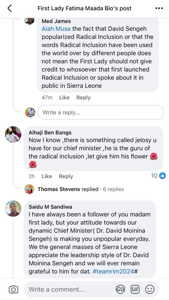 Many Sierra Leoneans see Mrs. Bio’ post for what it is, a calculated attack on her perceived rival, Dr. David Sengeh. And many have responded to her on social media, as the posts below show.