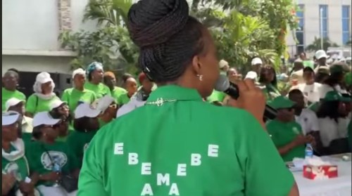 Fatima Bio reiterated her now-familiar personal political campaign slogan “Ebema gbi,” which was written on her T-shirt. She claimed it means the SLPP will never leave power for the APC in Sierra Leone. Never. In other words, elections are no longer relevant in Sierra Leone.