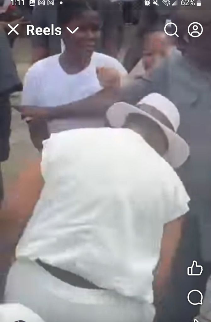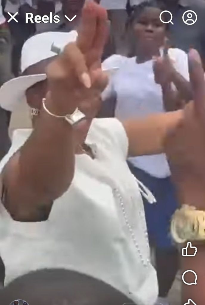 Fatima Jabbie Bio, the wife of acting President Julius Maada Bio, was seen on social media dancing in the streets of Freetown, surrounded by heavy security, and members of her SLPP faction, the JMB Women, while young girls who tried to come closer were physically blocked by her security guards.