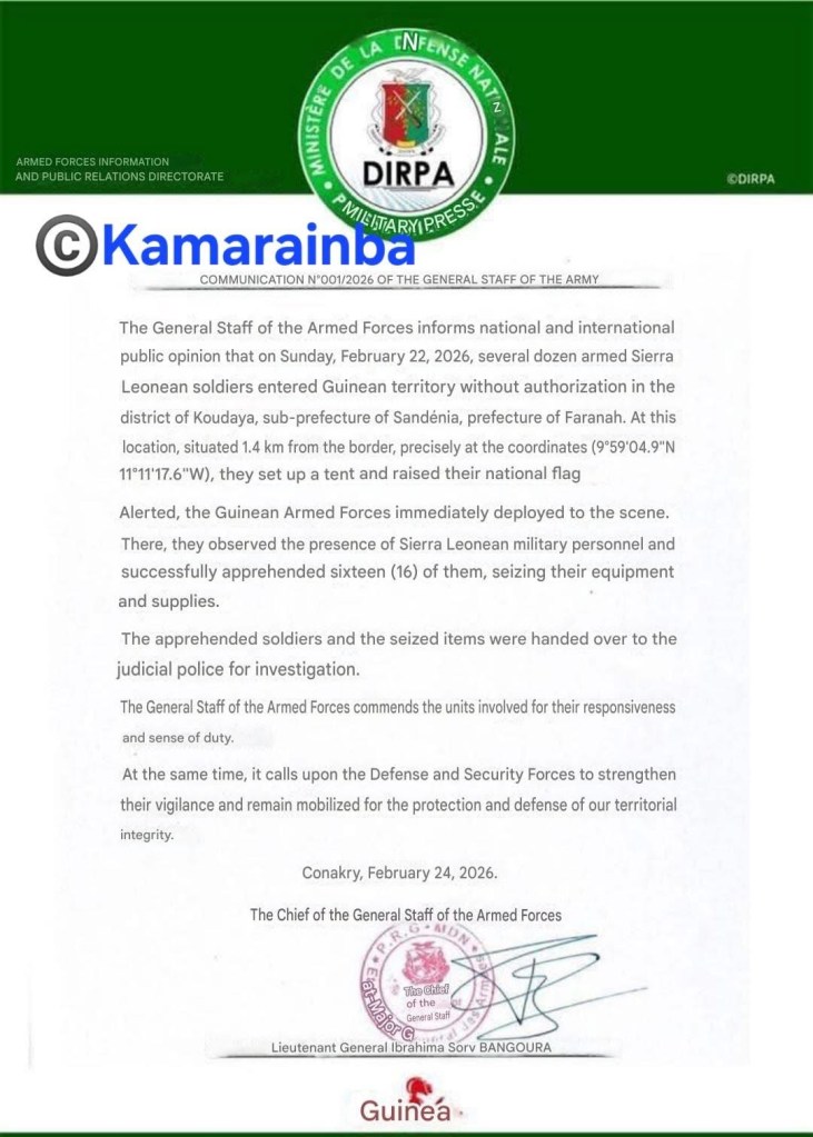 This is not a partisan argument. It is a constitutional one. The detention and disarming of Sierra Leonean soldiers by a neighboring military force is not an incident to be managed with press releases and diplomatic pleasantries. It is a sovereignty failure on the watch of a Commander-in-Chief who swore to prevent exactly this. Leadership is measured not only by the authority exercised inward, but by the security maintained outward. That security has been breached. The Constitution of Sierra Leone is unambiguous about where responsibility lies, and equally unambiguous about the remedies available when it is not discharged.