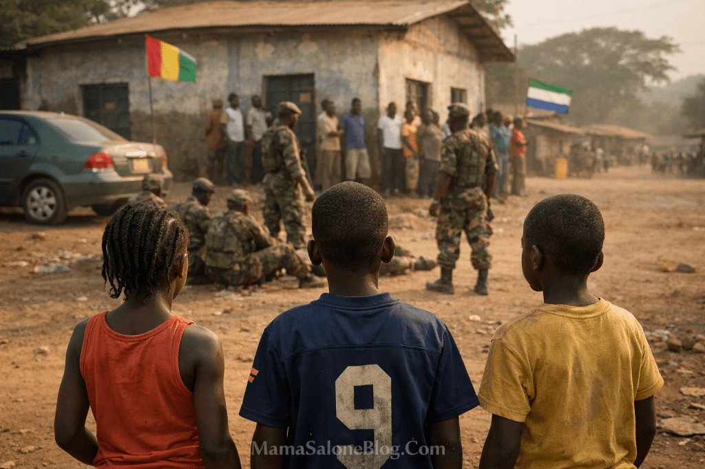 These children are not distant observers from another continent. These are border-town children. Some are Sierra Leonean. Some are Guinean. They grow up playing in the same dust, speaking similar dialects, sharing markets, crossing back and forth with their families. Their lives are intertwined by geography and history.
