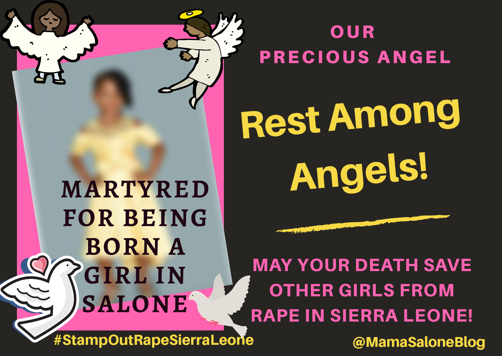 This gruesome death of our Precious Angel should not be in vain and should be a wakeup call for all Sierra Leoneans to be vigilant and work to stamp out rape.