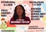 Today June 5, 2020, would have been Breonna Taylor’s 27th Birthday. But having been hit by 8 bullets that were shot into her body by Kentucky police officers, in her apartment, which they forcefully entered, while looking for persons that … Continue reading →